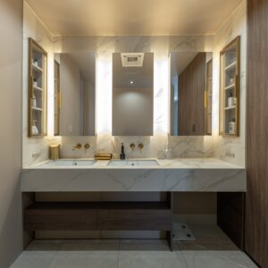 「こだわりの建築は、コストがかさむ」と思われがちですが、仕組みを変えることで解決できます。 アクアは設計だけでなく工事も自社で行うため、一般的な設計事務所で発生する「外部工務店への中間マージン」をカット。 その浮いたコストを、「上質な素材」や「こだわりの設備」に還元します。同じご予算でも、完成する建物のグレードと資産価値は大きく異なります。